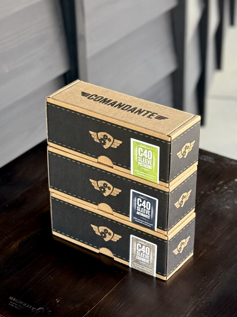 コマンダンテ を優しく包む、純正スリーブ ジャケット。最高品質のメリノウール100%で作られています。